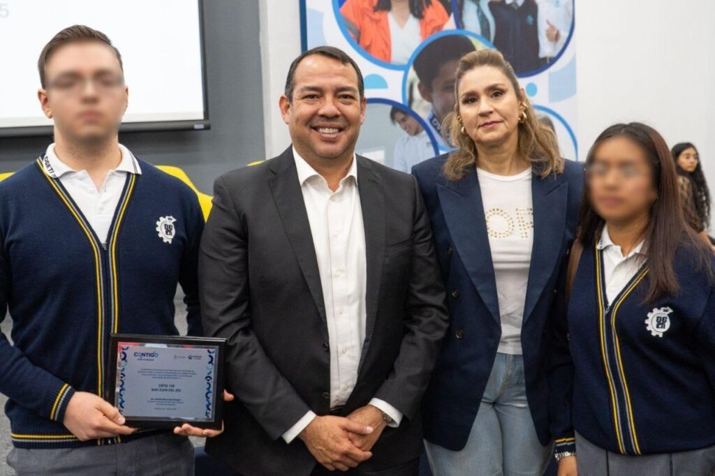 Durante la ceremonia, Mauricio Kuri entregó reconocimientos a instituciones públicas y privadas de la entidad que obtuvieron el mayor avance en su crecimiento académico, entre ellas se encuentran el Centro de Bachillerato Tecnológico, Industrial y de Servicios número 145 y el Colegio de Bachilleres del Estado de Querétaro plantel 18 Valle Dorado, ambos instalados en el municipio de San Juan del Río.