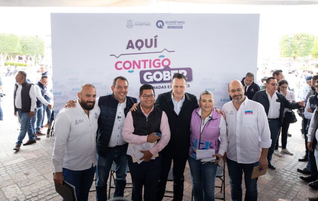 El gobernador del estado de Querétaro, Mauricio Kuri González, en compañía del presidente municipal de San Juan del Río, Roberto Cabrera Valencia, encabezó la “Jornada Aquí Contigo” en la Plaza Independencia, ubicada en el Centro Histórico de la demarcación, a la que asistieron cerca de 3 mil 800 personas.