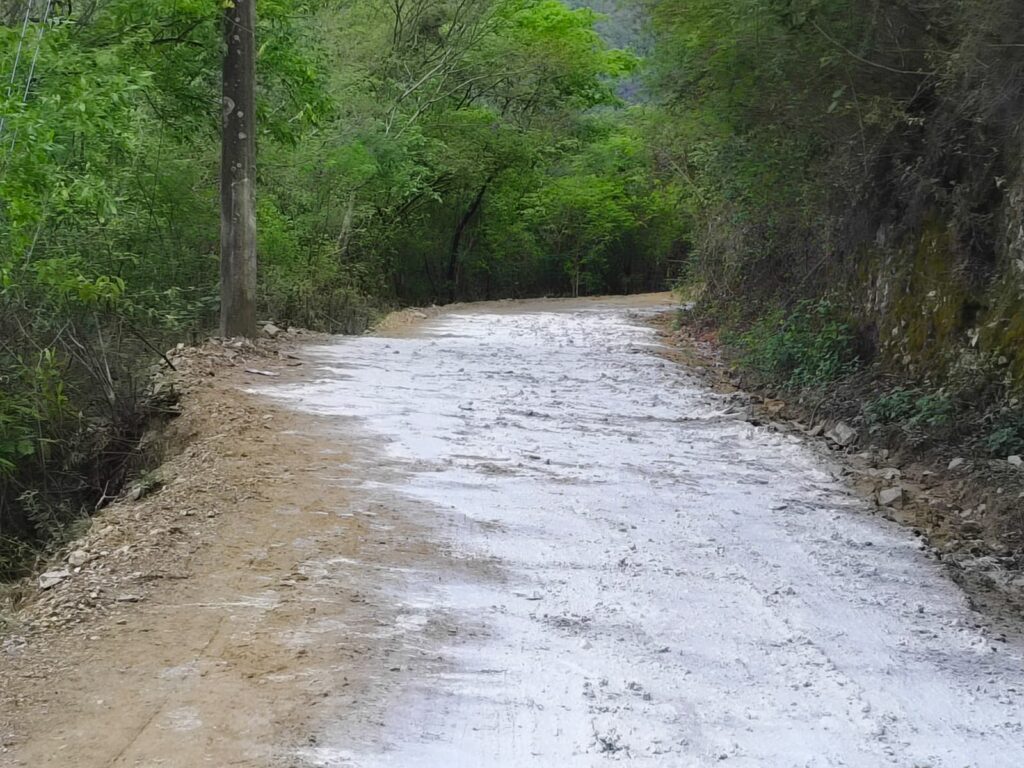 Cabe hacer mención que dicho camino fue revestido en su totalidad con apoyo de la CEI, con material de la propia comunidad, por lo que la administración municipal asume la responsabilidad de arreglar el tramo afectado por la lluvia.