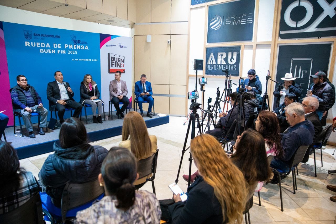 En rueda de prensa, el presidente municipal de San Juan del Río, Roberto Cabrera Valencia, resaltó que, durante el periodo de “El Buen Fin 2025”, se busca que lo que prevalezca sea la seguridad de las personas. Añadió que por medio de estas iniciativas se fortalece la economía de las familias sanjuanenses, quienes cuentan con mejores opciones de compra, o bien, incrementan sus ventas, lo que abona a la construcción de una Mejor Ciudad con un Legado de Bien Común.