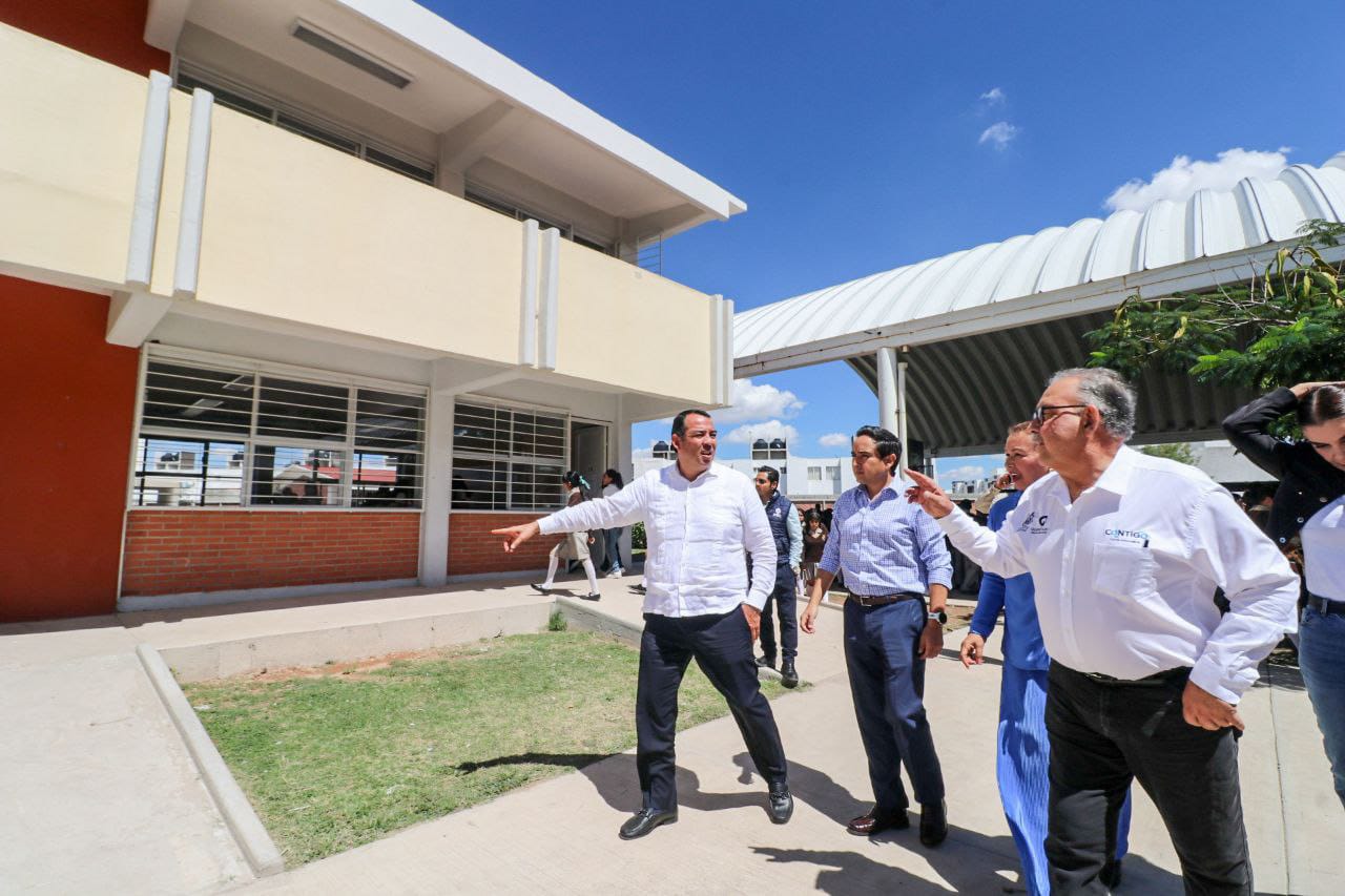 El presidente municipal de San Juan del Río, Roberto Cabrera Valencia, en equipo con el secretario de Planeación y Participación Ciudadana del estado de Querétaro, Luis Antonio Rangel Méndez, y el director del Instituto de Infraestructura Física Educativa del Estado de Querétaro (IIFEQ), Fernando Orozco Vega, entregaron dos aulas didácticas en la Secundaria Técnica 39, Emeterio González, ubicada en San Pedro Ahuacatlán.