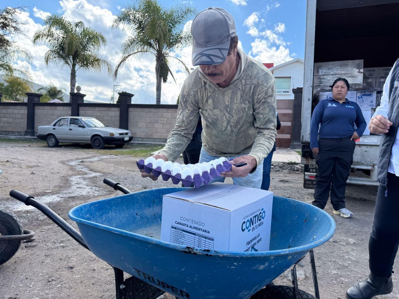 La Secretaría de Desarrollo Social llevó a cabo una nueva entrega de apoyos alimentarios como parte del programa Contigo en tu Mesa, mediante el cual se han distribuido tres mil 300 despensas en lo que va del año, correspondientes al primer bimestre de 2026.
