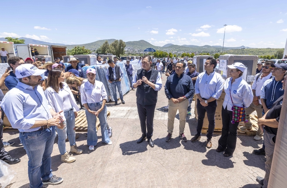 El gobernador, Mauricio Kuri González, acompañado por el presidente municipal de Querétaro, Felifer Macías, visitó el Centro de Distribución de Enseres Domésticos, desde donde se suministran los apoyos, que consisten en: refrigeradores, estufas, lavadoras, colchones con base y paquetes alimentarios a familias de las colonias afectadas por las lluvias de la semana pasada.