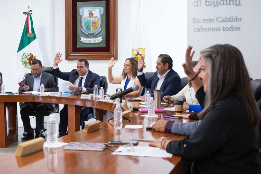 Las y los integrantes del Ayuntamiento de San Juan del Río, en sesión ordinaria de Cabildo de este jueves, aprobaron diferentes puntos de acuerdo, entre los que destaca la autorización para que este realice y convoque en septiembre próximo la sesión solemne con motivo del Segundo Informe de la situación general que guarda la Administración Municipal 2021-2024, encabezada por el presidente municipal, Roberto Cabrera Valencia.