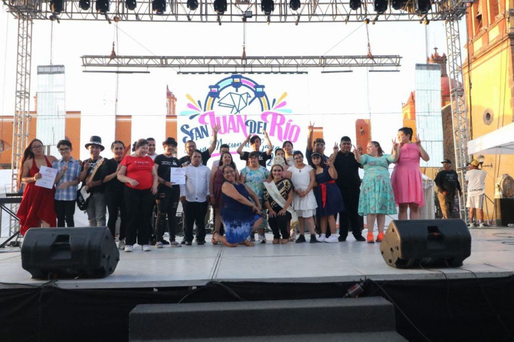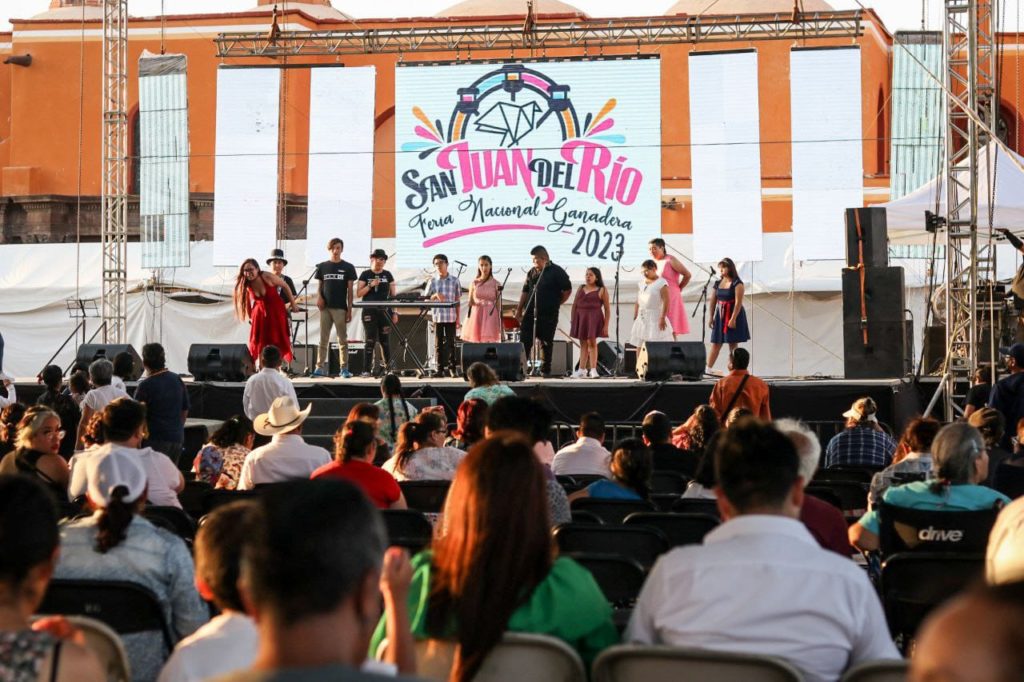 Como parte de las actividades de la Feria Nacional Ganadera San Juan del Río 2023, se llevó la presentación de las bandas Rock DI y Twin Pop en el jardín Independencia, evento en el que estuvieron presentes la Reina de la Feria, Dyane I, y la directora de Cultura municipal, Aleyda Andrés Ibarra.