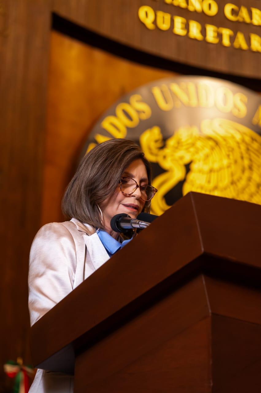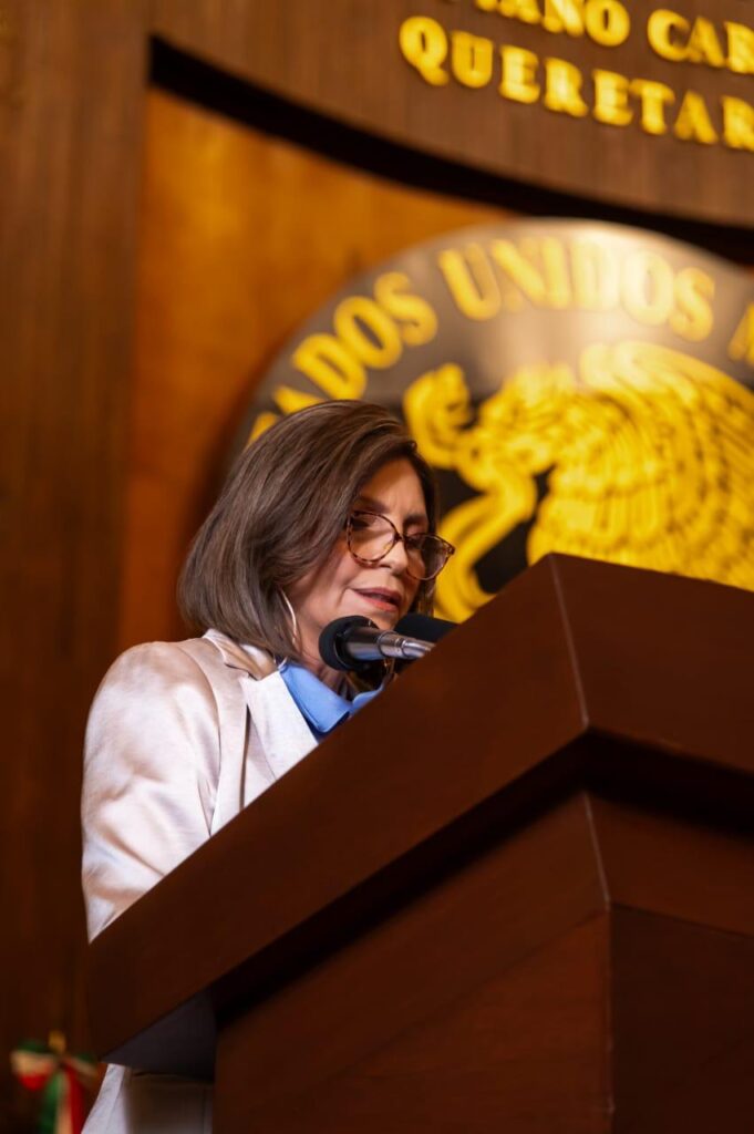 En su mensaje, ante empresarios, autoridades y representantes de la sociedad civil, Beatriz Hernández, destacó que COPARMEX Querétaro asume, con convicción, su papel como un contrapeso racional y asertivo, escuchando con empatía y hablando con responsabilidad, pero también con determinación, firmeza y congruencia.