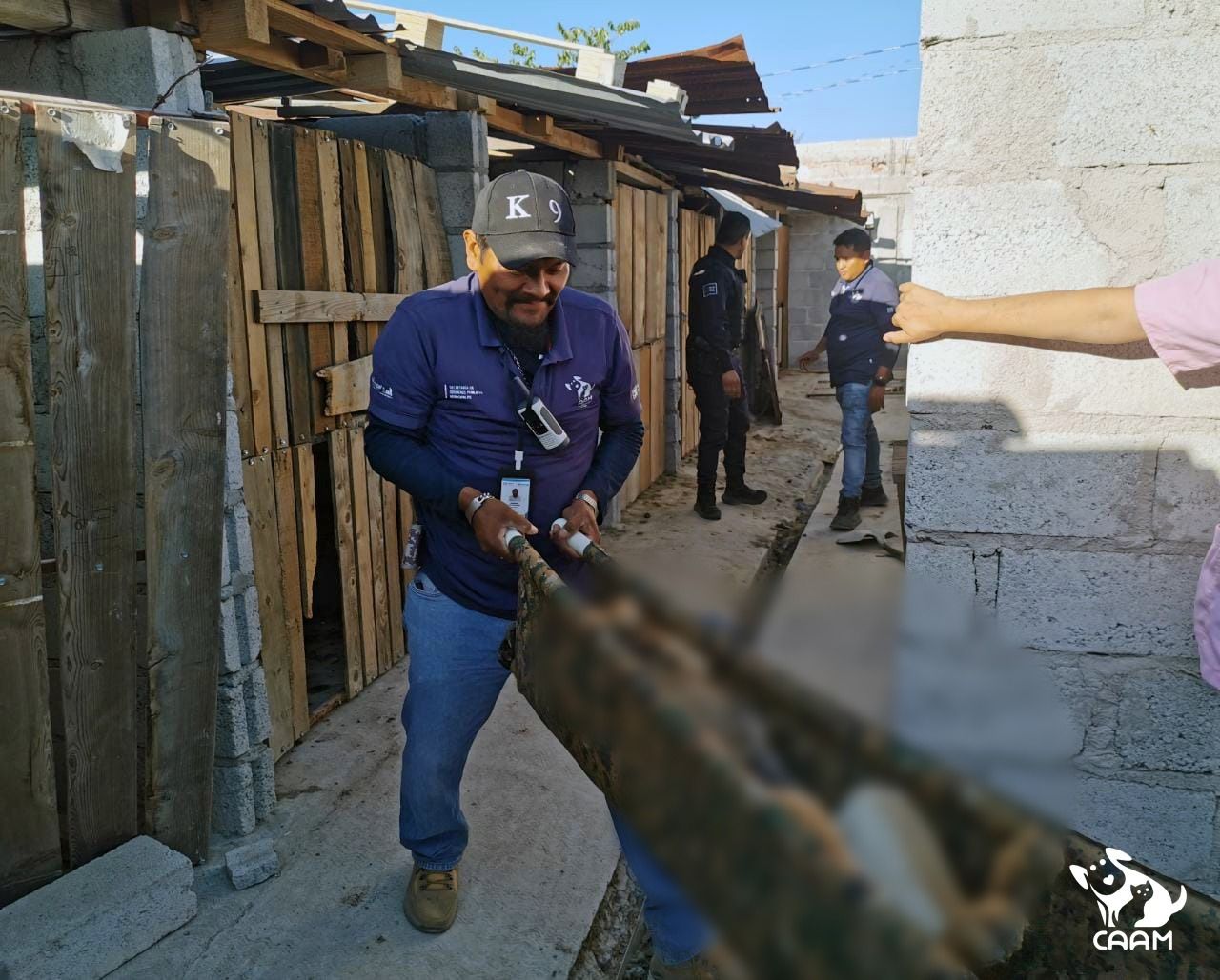 Personal de rescate del Centro de Atención Animal del Municipio de El Marqués (CAAM), en conjunto con la Secretaría de Seguridad Pública y Tránsito Municipal, rescataron a 20 ejemplares caninos que se encontraban al interior de una supuesta escuela de adiestramiento en el Barrio de la Providencia, en la comunidad de Saldarriaga.