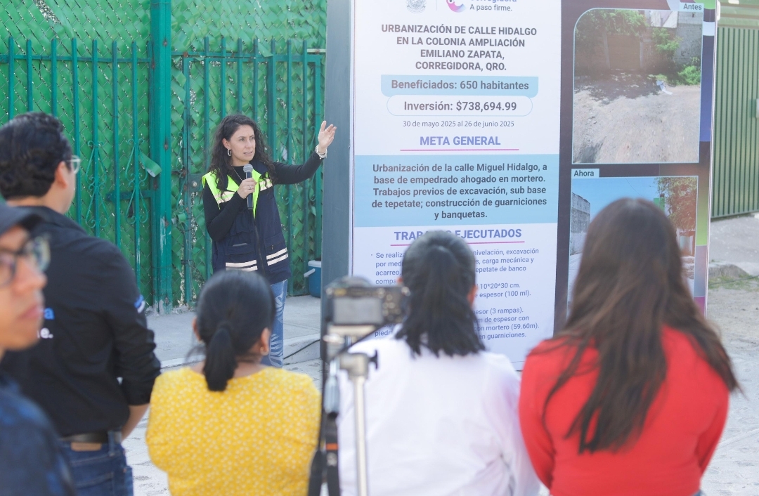 La titular de la Secretaría de Obras Públicas del Municipio de Corregidora, Viridiana Nava, detalló que la urbanización de la calle Miguel Hidalgo se llevó a cabo a base de empedrado ahogado en mortero, además de los trabajos previos de excavación, sub base de tepetate, la construcción de guarniciones y banquetas, y la colocación de pintura de tráfico reflejante.