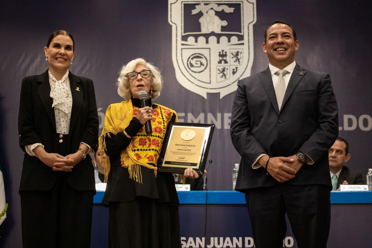 Posteriormente, el alcalde de San Juan del Río entregó un reconocimiento como sanjuanense distinguida a Genoveva Sonia Butze Aguilar, investigadora del Instituto Nacional de Antropología e Historia (INAH) e impulsora del Museo Panteón de la Santa Vera Cruz (antes Museo de la Muerte), además de conservadora del patrimonio, tradiciones y educación, entre otras actividades relacionadas con la actividad museográfica.