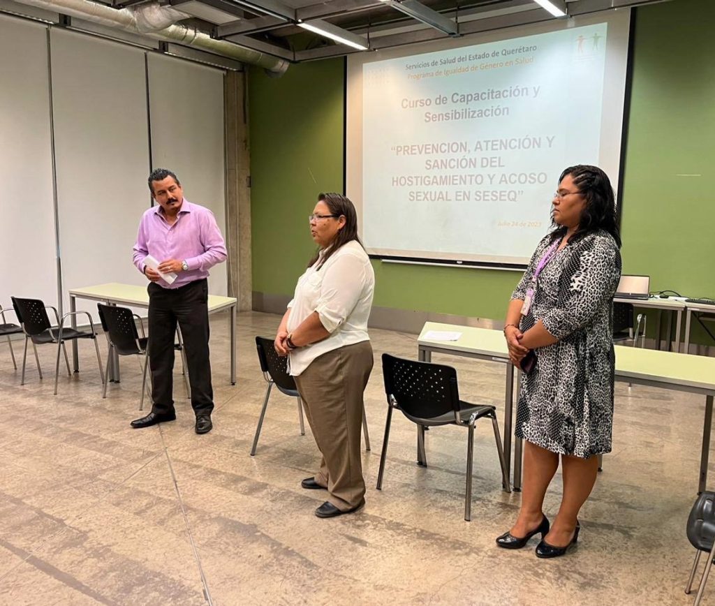 Los profesionales de la Jurisdicción Sanitaria número 1 de la Secretaría de Salud (SESA) del estado de Querétaro, a través del Departamento de Salud Reproductiva en sus componentes de Violencia e Igualdad de Género, presentaron el curso “Cero Tolerancia al Hostigamiento y Acoso Sexual», dirigido a personal de primer nivel de atención, con el propósito de brindar un ambiente con seguridad psicosocial y laboral a las y los trabajadores.
