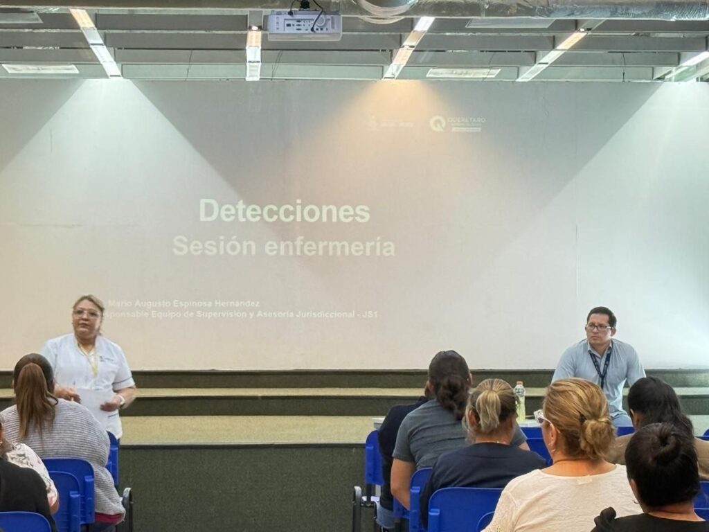 Las y los trabajadores de la Jurisdicción Sanitaria No. 1 de la Secretaría de Salud (SESA) del estado de Querétaro, realizaron capacitación para 94 profesionales de enfermería de los Centros de Salud de los municipios de Corregidora, El Marqués, Huimilpan y Querétaro con el objetivo de fortalecer la calidad la atención a la población queretana con los temas Tamiz Metabólico y Procedimiento para la Recepción de Pacientes en Área de Somatometría.
