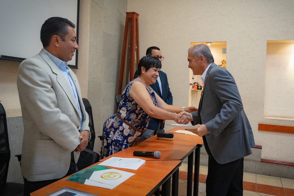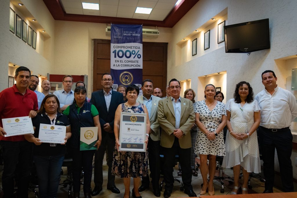 La secretaria de Salud del estado, María Martina Pérez Rendón, recibió un reconocimiento del Sistema Estatal Anticorrupción por haber concluido la capacitación “Servidores Públicos Anticorrupción” al 100 por ciento de la plantilla, concientizando a siete mil 409 servidores públicos.