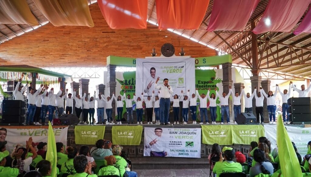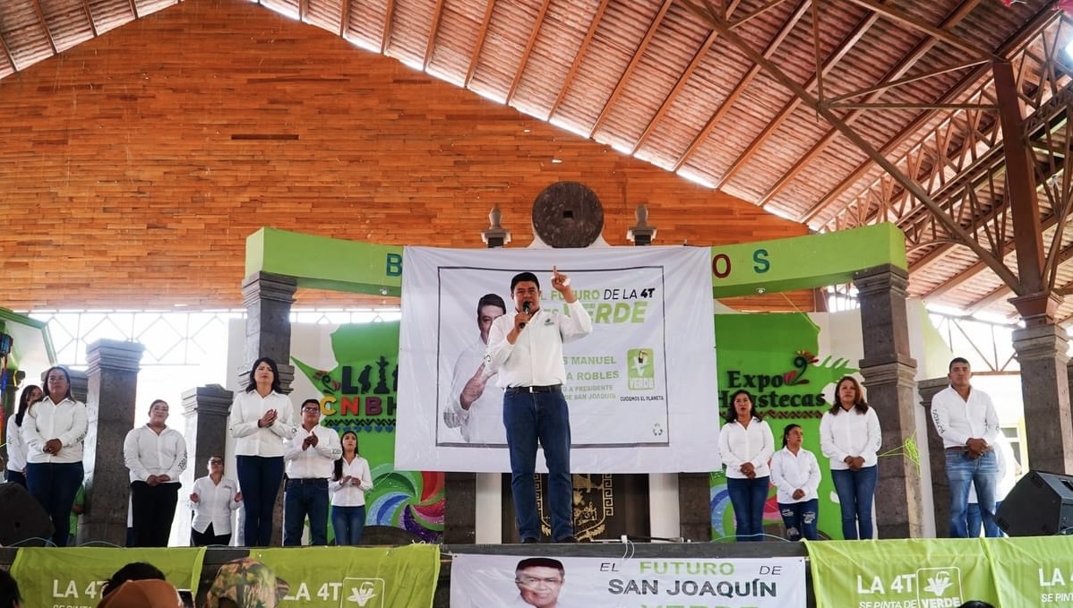El candidato a la Presidencia por el Municipio de San Joaquín hoy en la plaza «Galación Camacho», se llevó a cabo el cierre de la campaña, tras 45 días de un intenso recorrido por todos los barrios de la cabecera municipal y las comunidades del municipio.