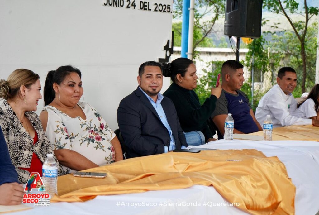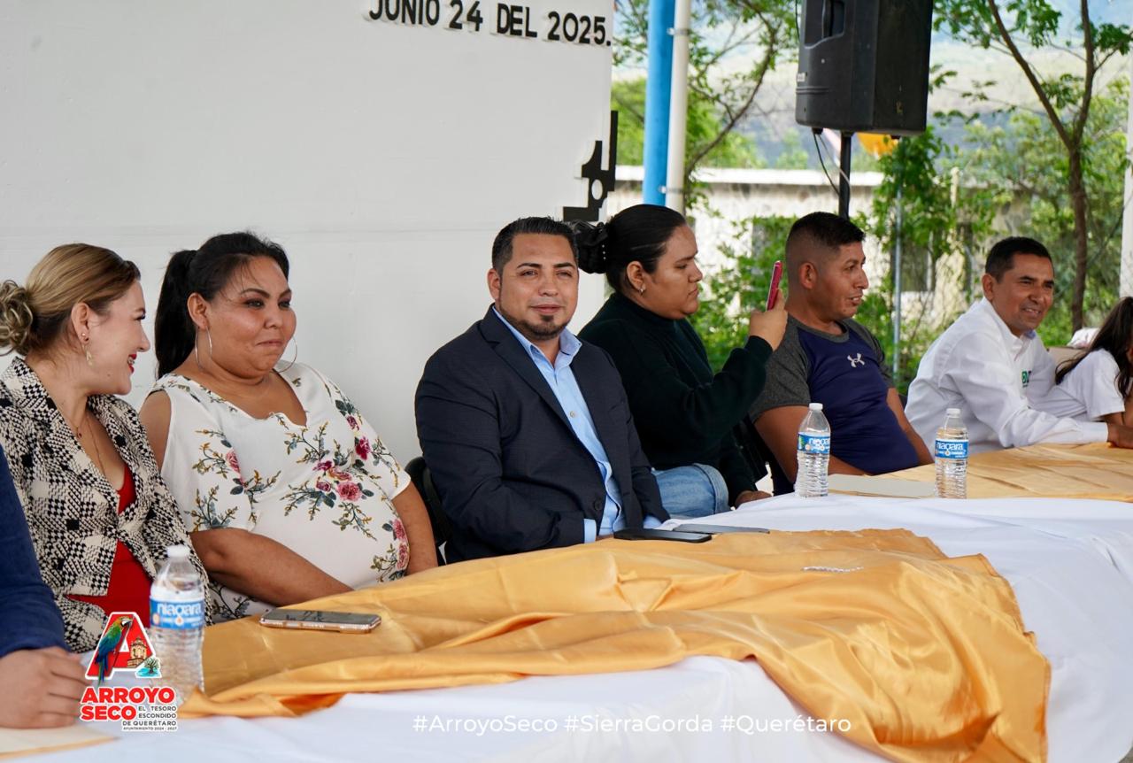 Acompañaron al Presidente Municipal en la línea de honor la Presidenta del Patronato del SMDIF, Yulma García Gil; la Directora del SMDIF, Reyna Camacho; el Subdelegado de Las Trancas, Ebodio Ferretiz; el Delegado de Concá, Nerhuh Espinoza; el Padrino de Generación, Alberto Olvera; y la educadora, Alba Balderas.