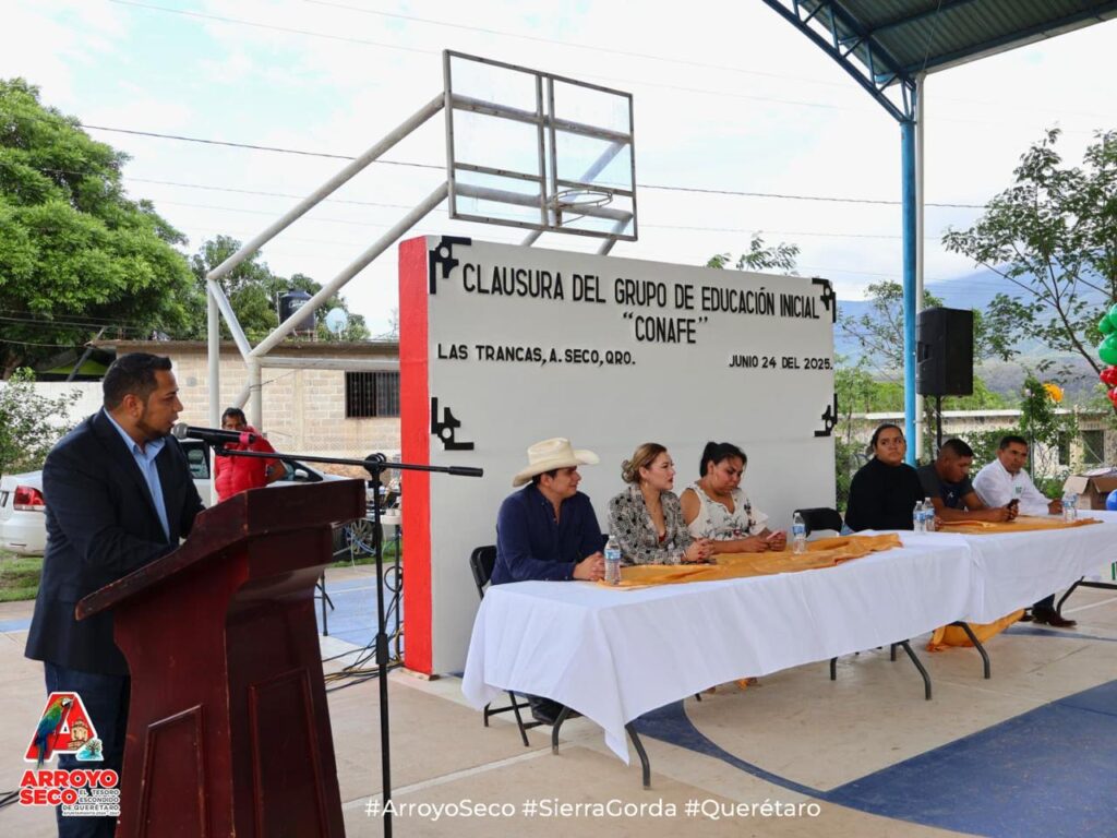 La tarde de este 24 de junio, el Presidente Municipal, Fernando Sánchez Gil, acompañó a las niñas y niños que se graduaron del curso de Educación Inicial 2025 de CONAFE en la comunidad de Las Trancas.