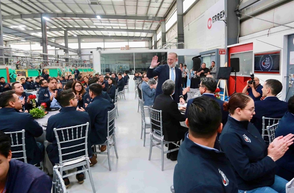 El titular de la Secretaría de Desarrollo Sustentable (SEDESU), Marco Antonio Del Prete Tercero, encabezó la celebración de 25 años en el estado de la empresa Erreka, periodo durante el cual ha ampliado su capacidad productiva para atender tanto al mercado local como las exportaciones industriales, además de representar un vínculo industrial entre México y el País Vasco.
