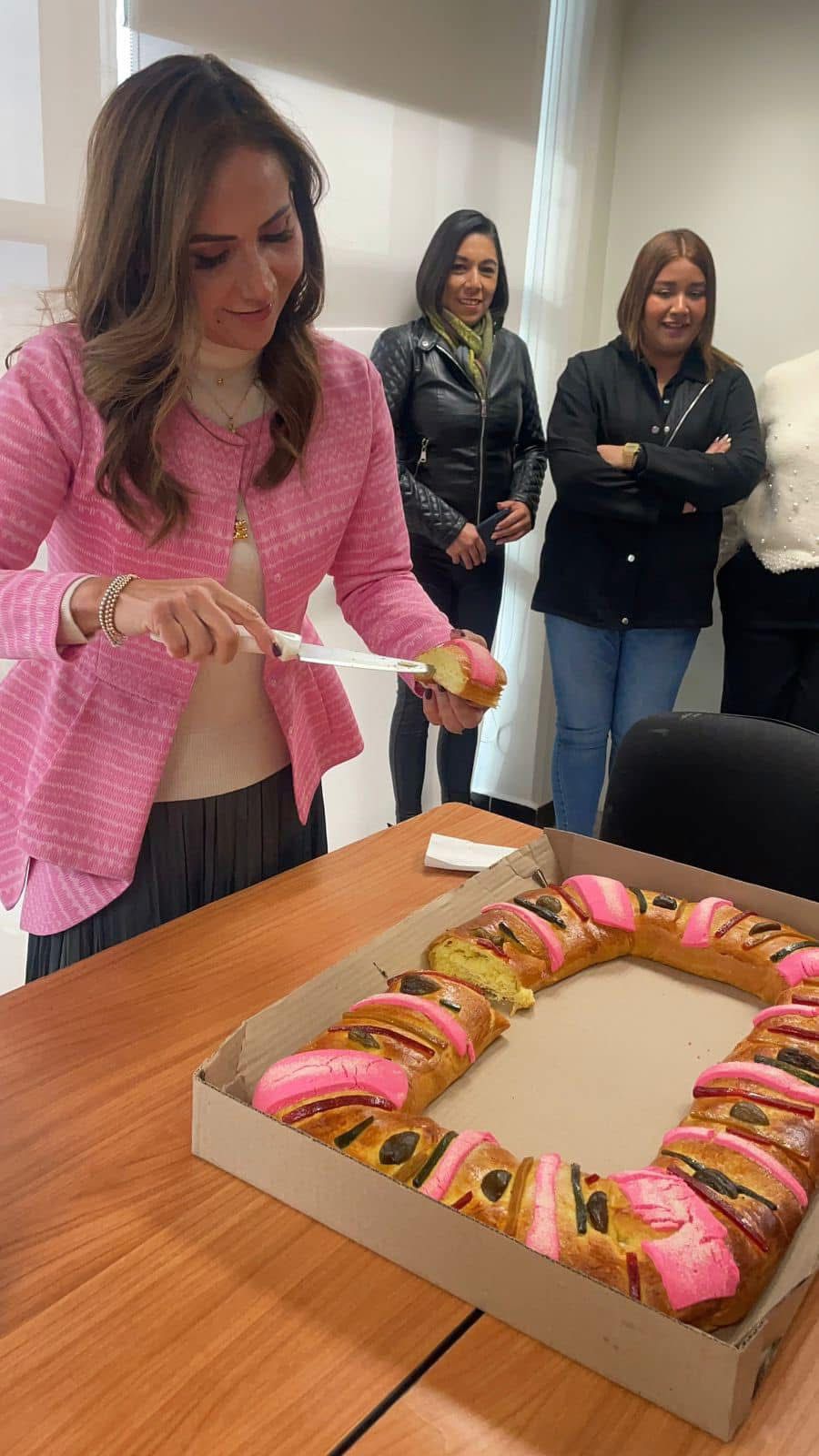 La Secretraria Sonia Rocha inicia el año con el pie derecho celebrando y compartiendo la rosca con las y los integrantes de La Secretaría de las Mujeres, iniciando con un gran espíritu renovado, deseándo que los Reyes hayan sido generosos con cada uno, disfrutando de cada sorpresa que la vida ofrece.