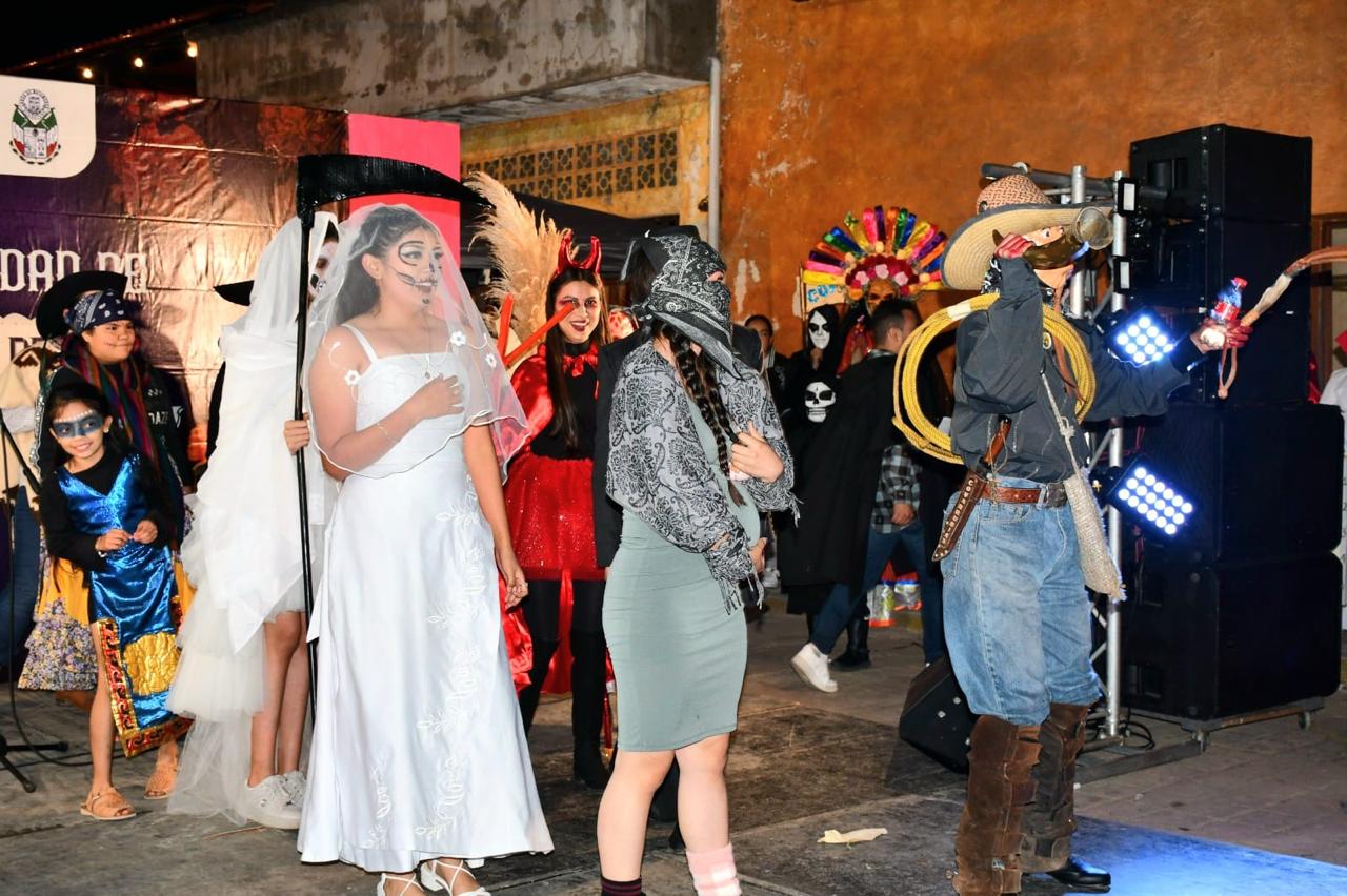 Como parte del programa, se llevaron a cabo los concursos de calaveritas literarias, mini altares, altares y comparsas, que mantuvieron atento y participativo al público, el cual acompañó con aplausos cada presentación.
