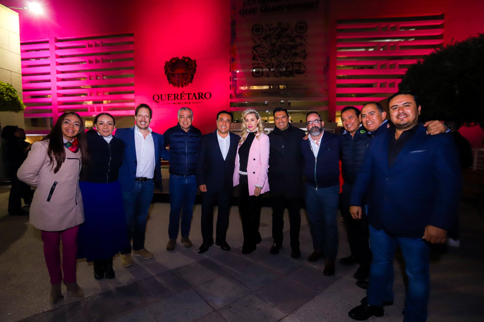 En el marco de la conmemoración del Día Mundial de la Lucha contra el Cáncer de Mama que se celebra el 19 de octubre, el Presidente Municipal de Querétaro, Luis Nava, acompañado de su esposa y Presidenta del Patronato del Sistema Municipal DIF, Arahí Domínguez, encabezó el encendido de la fachada del Centro Cívico en color rosa para concientizar a las mujeres sobre la importancia de la autoexploración para la detección temprana de este tipo de cáncer.