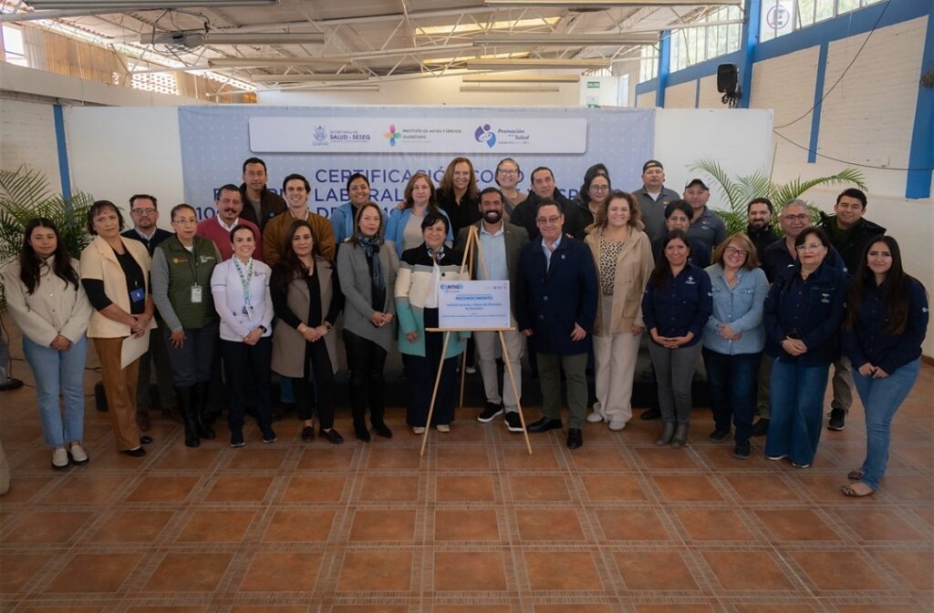 La titular de la Secretaría de Salud (SESA) del estado de Querétaro, Martina Pérez Rendón, encabezó la ceremonia de develación de la placa que acredita la certificación del edificio del Instituto de Artes y Oficios como Entorno Laboral Saludable y 100 por ciento Libre de Humo de Tabaco, reconocimiento que refrenda el compromiso institucional con la protección y promoción de la salud de las y los trabajadores.