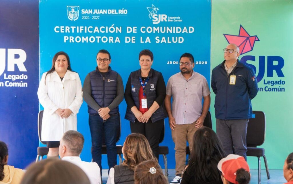 Durante la entrega del certificado y la develación de la placa correspondiente, en representación del presidente municipal de San Juan del Río, Roberto Cabrera Valencia, la directora de Salud Comunitaria, Crispina Osornio Valencia, resaltó que, a través del cuidado de la salud, se construye un Legado de Bien Común, una Mejor Sociedad y un Mejor San Juan.