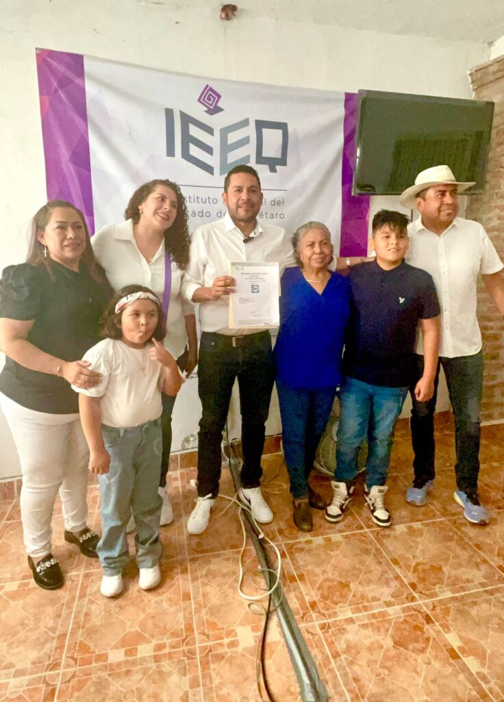 A su registro llegó acompañado por sus simpatizantes, dio a conocer a 3 de sus 6 regidores, comentando que por la zona de Sabino y Casa Blanca llevará dos regidores, Hugo por Maguey Manzo y Sergio por CasaBlanca, también a la joven Liz por San Pablo.