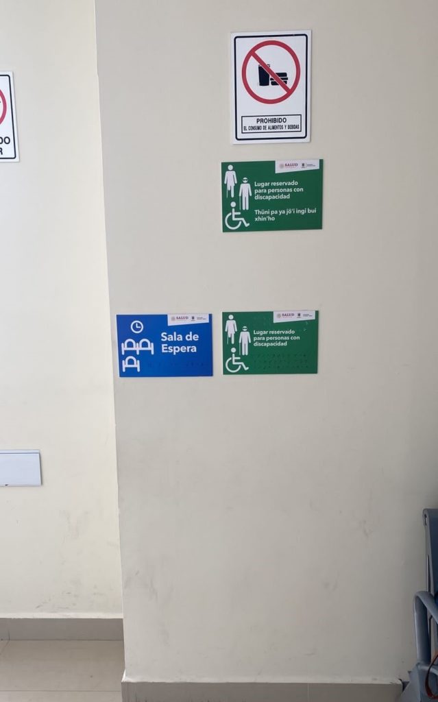También se capacita a personas en condición de vulnerabilidad respecto de los riesgos a su salud y temas de autocuidados de la salud física y mental. Con este fin se reproducen audiovisuales en lengua otomí dirigidos a personas usuarias. El Centro de Salud cuenta con señalética de los servicios que se brindan, en lengua otomí y en braille para la población con discapacidad visual.