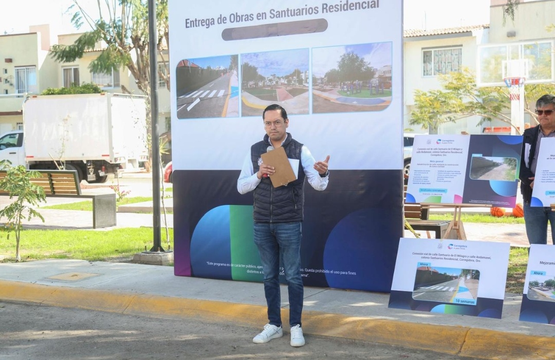 En la colonia Santuarios Residencial, el presidente municipal de Corregidora, Chepe Guerrero, entregó la conexión vial entre las calles Santuario de El Milagro y Andamaxei, una obra que beneficia directamente a más de 5 mil 600 habitantes, con una inversión superior a un millón y medio de pesos.