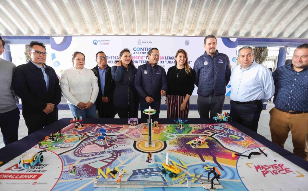 El presidente municipal de Corregidora, Chepe Guerrero, entregó el programa “RobotiX” First Lego League en la Escuela Secundaria Técnica No. 33 “Juan Aldama”, el cual está enfocado en fomentar en estudiantes de preescolar, primaria y secundaria la pasión por la ciencia y la tecnología a través del juego.