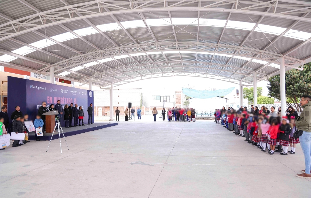 El presidente municipal de Corregidora, Chepe Guerrero, entregó la construcción de la plaza cívica y el arcotecho en la escuela primaria “Bicentenario de la Independencia de México”, ubicada en la colonia Pirámides. La obra representó una inversión de 4.2 millones de pesos.