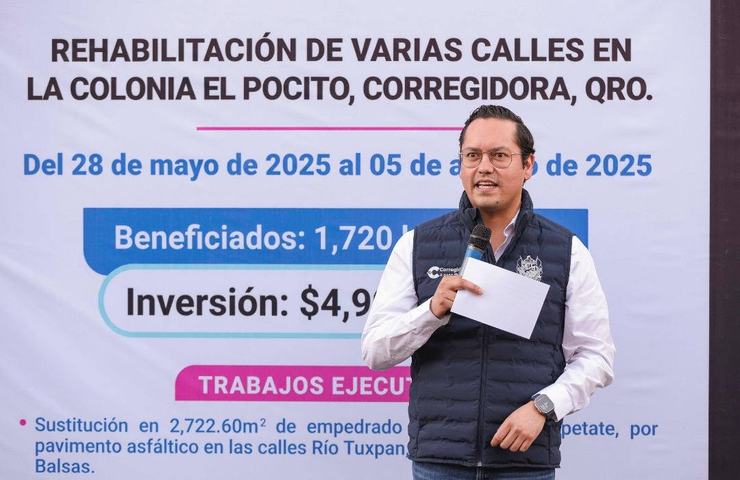 El presidente municipal de Corregidora, Chepe Guerrero, entregó la rehabilitación de las calles: Río Tuxpan, Río Grijalva, Río Balsas y Río Lerma en la colonia El Pocito, beneficiando a casi dos mil habitantes gracias a una inversión de cerca de 5 millones de pesos.