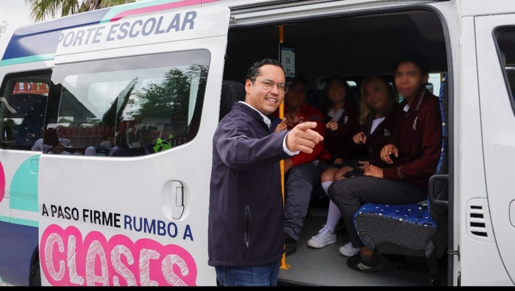 De acuerdo con el secretario David Sánchez Padilla, el programa de Transporte Escolar Gratuito traslada de manera segura a estudiantes de secundaria, bachillerato y universidad de 31 colonias y comunidades, evitando así la deserción escolar y apoyando la economía de sus familias.