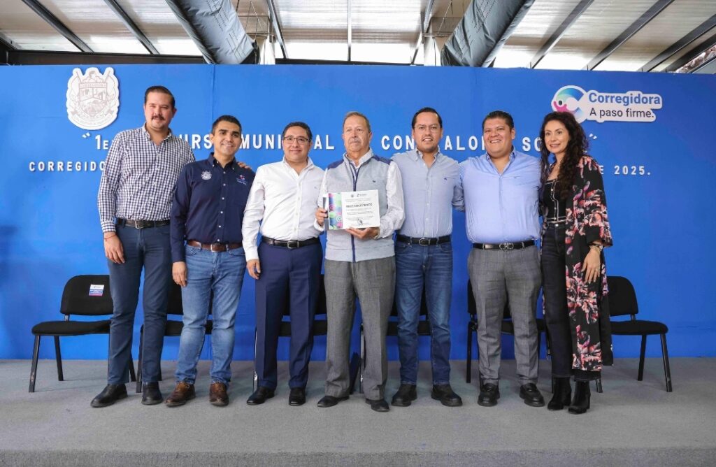 El presidente municipal de Corregidora, Chepe Guerrero y el secretario de la Contraloría del Estado, Óscar García, entregaron reconocimientos a los ganadores del Primer Concurso Municipal de Contraloría Social, en sus dos categorías: Acciones de los Comités de Contraloría Social y Acciones de Vigilancia Ciudadana en la Gestión Pública.