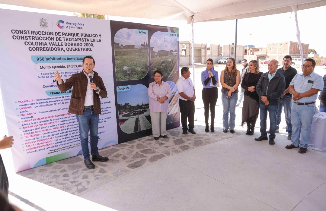 El presidente municipal de Corregidora, Chepe Guerrero, entregó la construcción del nuevo parque público en la colonia Valle Dorado, con una inversión de más de 4.3 millones de pesos en beneficio de 950 habitantes.