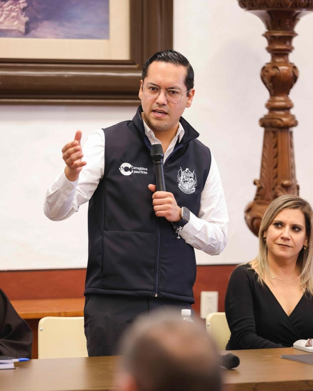 En la reunión participaron: la titular de la Secretaría Particular, Gabriela García; el secretario de Desarrollo Económico, Adolfo Colín; el director municipal de Protección Civil, Omar Lugo; el secretario de Seguridad Pública, Ángel Rangel; el titular de la Secretaría de Movilidad, David Sánchez; la secretaria de Gobierno, Cristina Fernández; la secretaria de Cultura y Tradiciones, Schoenstatt Cabrera; el secretario de Servicios Públicos, Carlos Jiménez; y el secretario del Ayuntamiento, Rafael Montoya.