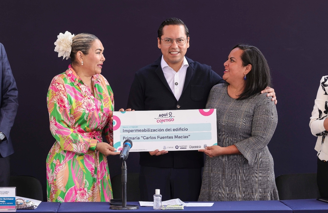 La Unidad de Servicios para la Educación Básica en el Estado de Querétaro (USEBEQ) entregó un vale para la impermeabilización de la primaria “Carlos Fuentes Macías”.