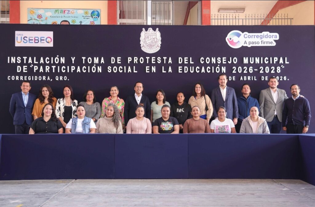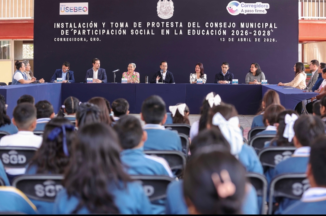 El presidente municipal de Corregidora, Chepe Guerrero, tomó protesta a los 11 integrantes del Consejo Municipal de Participación Social en la Educación 2026–2028, en un acto realizado en la escuela primaria “Carlos Fuentes Macías”, en la colonia Lomas de Balvanera.