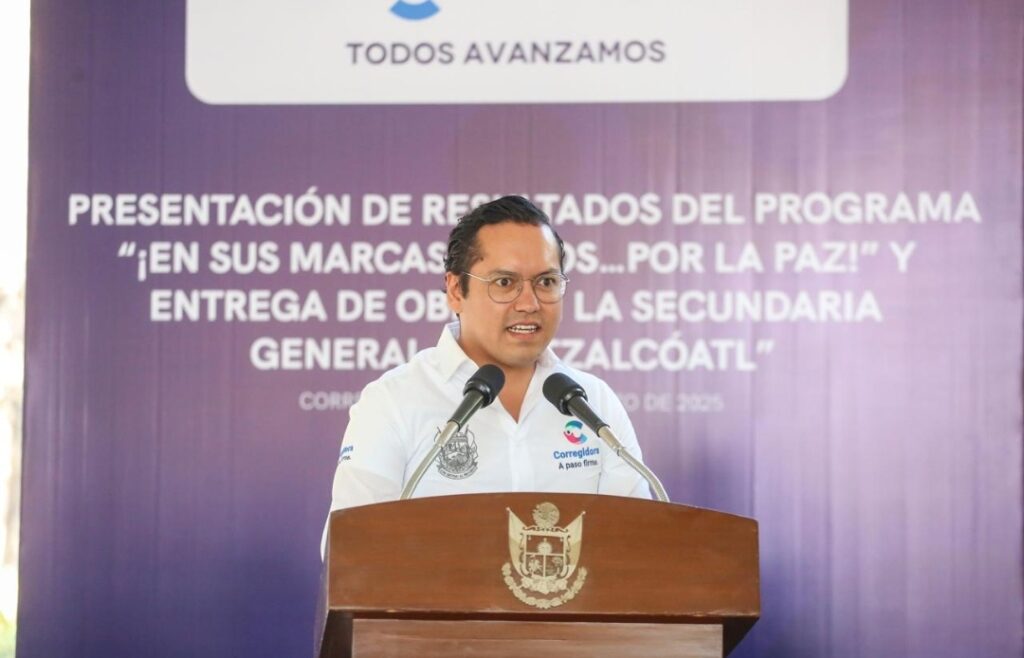 El presidente municipal de Corregidora, Chepe Guerrero, acompañó al gobernador de Querétaro, Mauricio Kuri, en la presentación de los resultados del programa “¡En sus Marcas, Listos… por la Paz!” en la Secundaria General Quetzalcóatl. Este programa tiene como objetivo resolver los conflictos escolares de manera pacífica, mediante la capacitación y la realización de actividades.