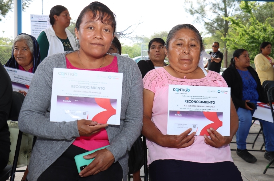La titular de la Secretaría del Trabajo, Liliana San Martín Castillo, clausuró los cursos de Deshilado, así como Panadería y Repostería en las localidades de Mesa de Chagoya y San Pablo, municipio de Tolimán, como parte del programa de capacitación para el autoempleo mediante los cuales se beneficiaron 40 mujeres de la zona, quienes recibieron instrucción gratuita, beca de tres mil pesos y apoyo con materiales.