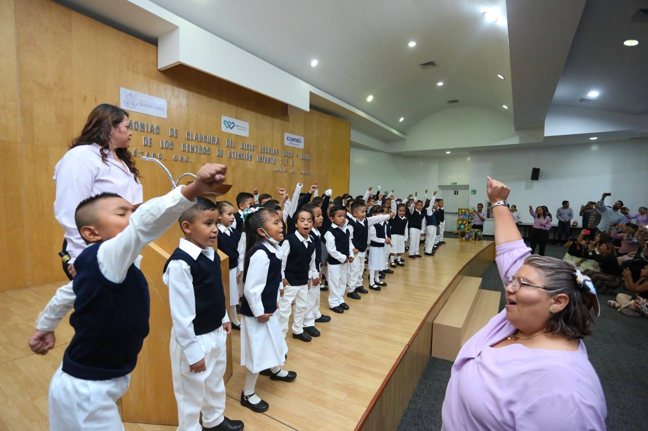 El director de Rehabilitación y Asistencia Social del DIF Estatal, Francisco Reséndiz López,  encabezó la ceremonia de clausura del ciclo escolar 2022-2023 de los Centros de Atención Infantil (CAI) No. 1 y 2, que atienden a las y los hijos de madres trabajadoras o familias en situación de vulnerabilidad.