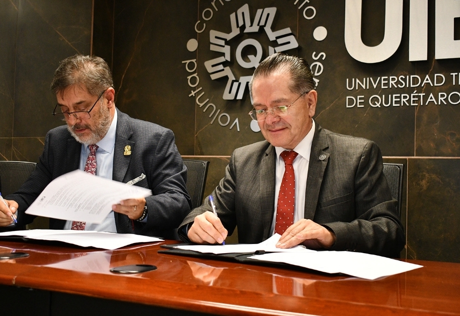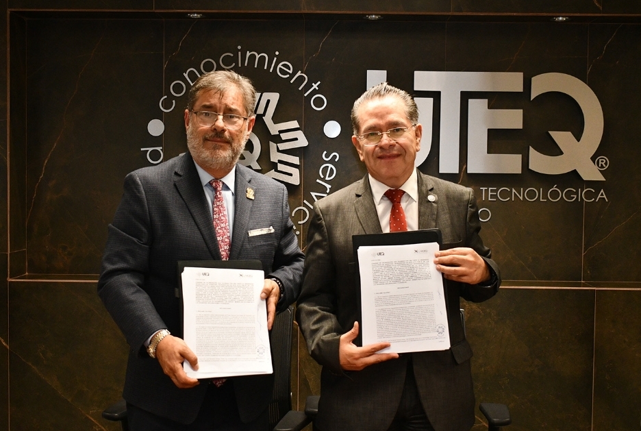 El rector de la Universidad Tecnológica de Querétaro (UTEQ), Luis Fernando Pantoja Amaro y su homólogo de la Universidad Central de Querétaro (UNICEQ), Ricardo Guzmán Fernández, firmaron un convenio de colaboración para fortalecer las actividades de ambas instituciones mediante el desarrollo de programas para la realización del servicio social, prácticas y estadías profesionales en beneficio de las y los estudiantes.