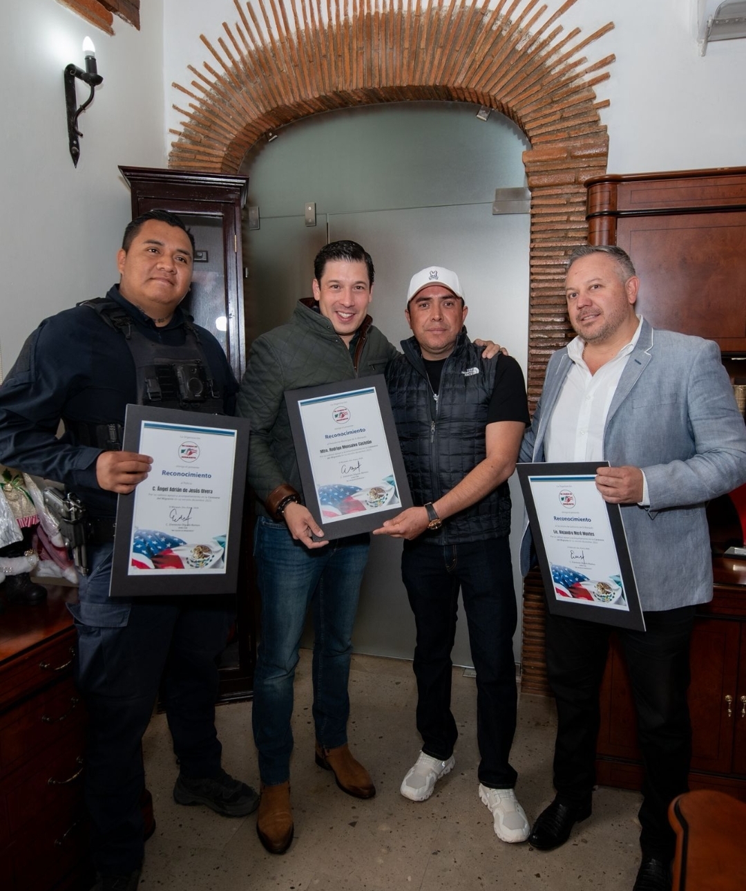 El presidente municipal Rodrigo Monsalvo Castelán recibió un reconocimiento por parte de la comunidad migrante en agradecimiento al respaldo brindado durante la Caravana Migrante 2025 realizada en diciembre pasado.