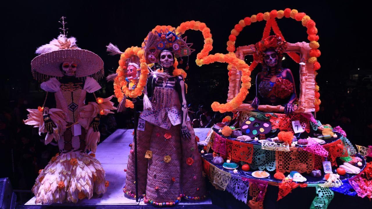 - El primer lugar de la “Pasarela y Concurso de Catrinas” fue para Ana Victoria Estrella con su “Catrina de la Vida y la Muerte”; la voz gemela de Juan Gabriel y Los Teen Tops deleitaron al público.