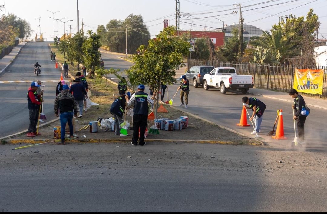 Además, se realizaron labores de limpieza y barrido de calles, pintado de guarniciones, así como la limpieza de la glorieta y del puente ubicados sobre la entrada principal de Los Héroes.