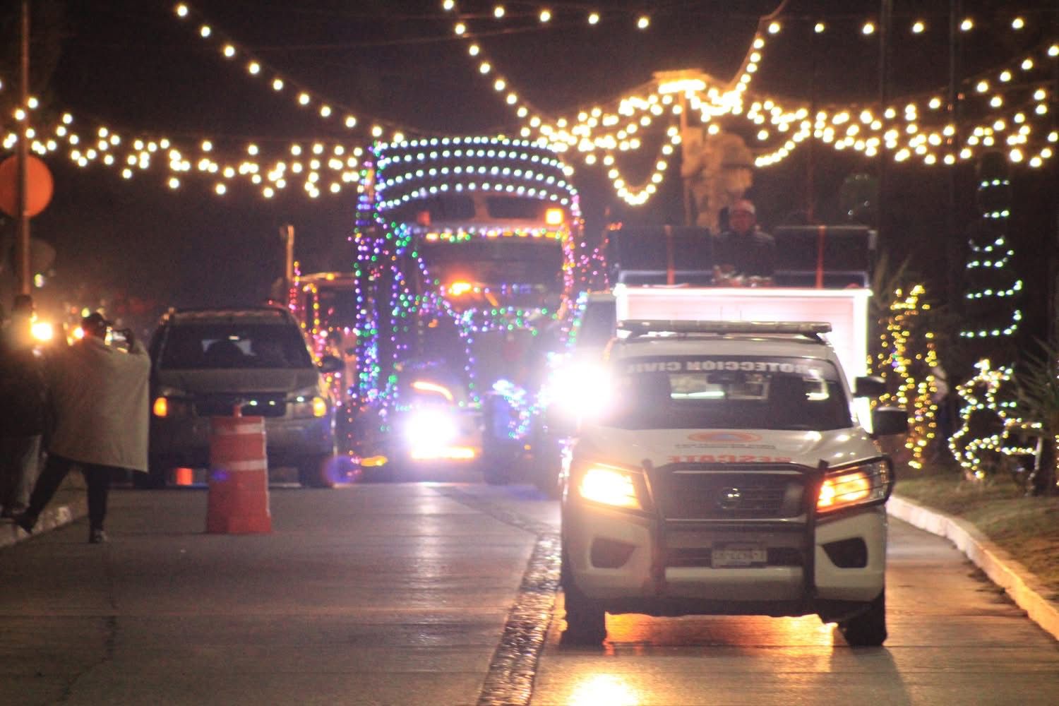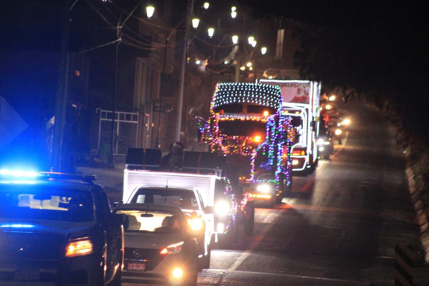 Las principales calles de San Joaquín se iluminaron por completo con el paso de los autos y camiones adornados que participaron este año en la Caravana Roluc-Tecate 2024.