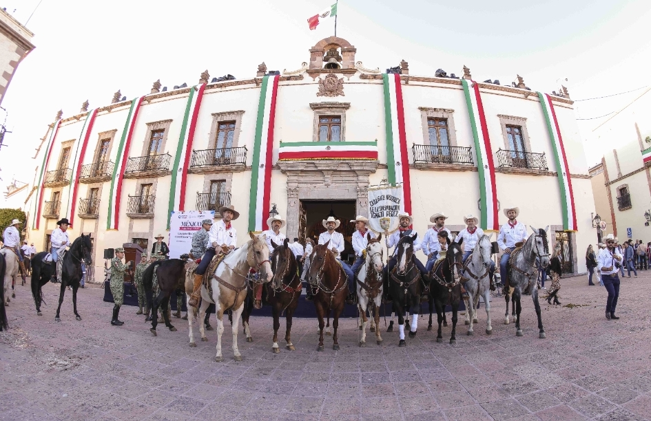 El titular del Poder Ejecutivo estatal, Mauricio Kuri González, encabezó el inicio de las festividades conmemorativas por la Independencia de México, al recibir en Palacio de la Corregidora a los participantes de la Cabalgata Histórica de la Conspiración Ignacio Pérez, acto que evoca la memoria viva de aquellos quienes con su voz y sangre dieron patria y libertad.