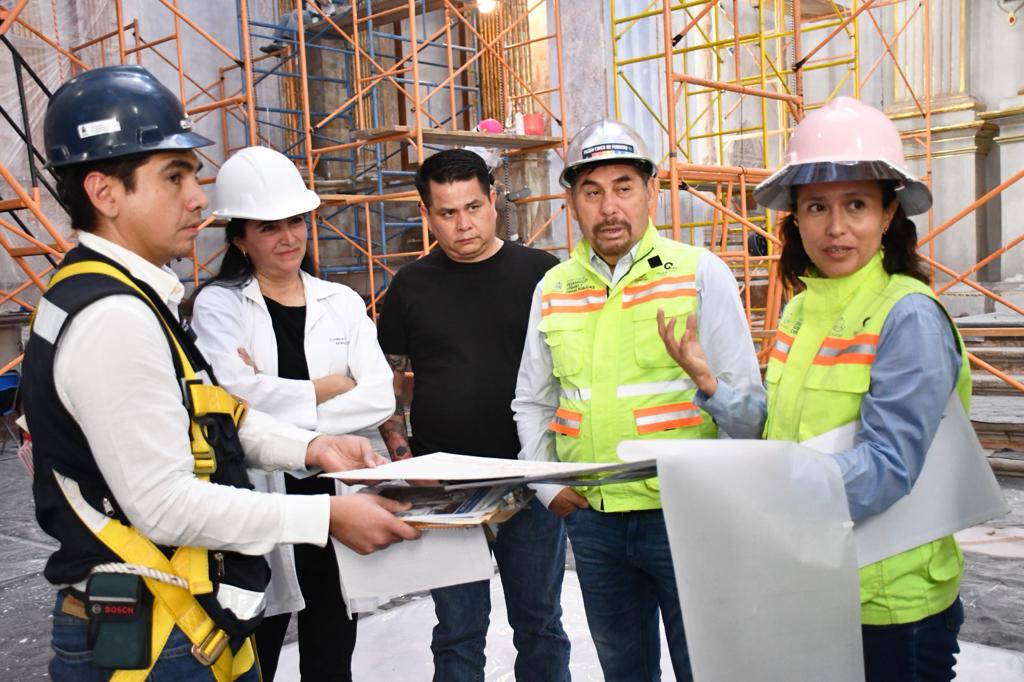Durante su estancia en el templo de la misión “Santiago Apóstol” donde los funcionarios fueron recibidos por el párroco César de la Vega Zúñiga, el equipo de restauradores (quienes encabezan dicha obra); ofrecieron una explicación detallada respecto al avance en los diversos trabajos que se desarrollan, así como las técnicas y materiales con que trabaja.