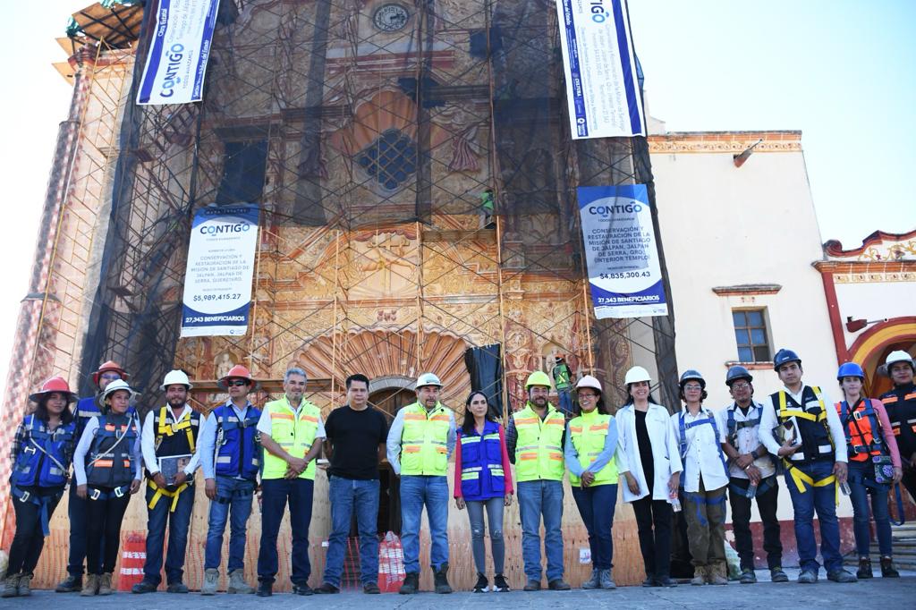 el Director de Obras Públicas de este municipio José Silvio Guzmán Lázaro, acompañó al titular de la Secretaría de Desarrollo Urbano y Obras Públicas del Estado Fernando González Salinas y a la diputada Selene Salazar; durante un recorrido de supervisión de los trabajos de conservación y restauración que se llevan a cabo a la Misión de Jalpan de Serra, que es un gran potencializador del turismo.