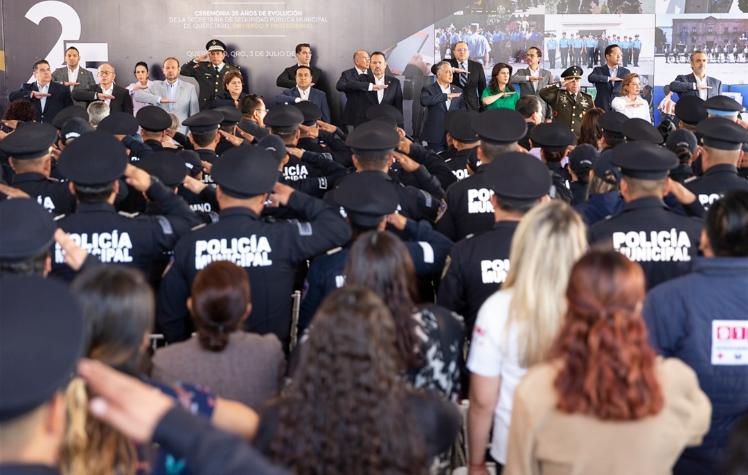 El edil capitalino celebró los 25 años de Evolución, Sirviendo y Protegiendo a Querétaro de la corporación municipal; también refrendó su compromiso de cuidar a los habitantes de la demarcación y a trabajar en equipo a favor de la seguridad.