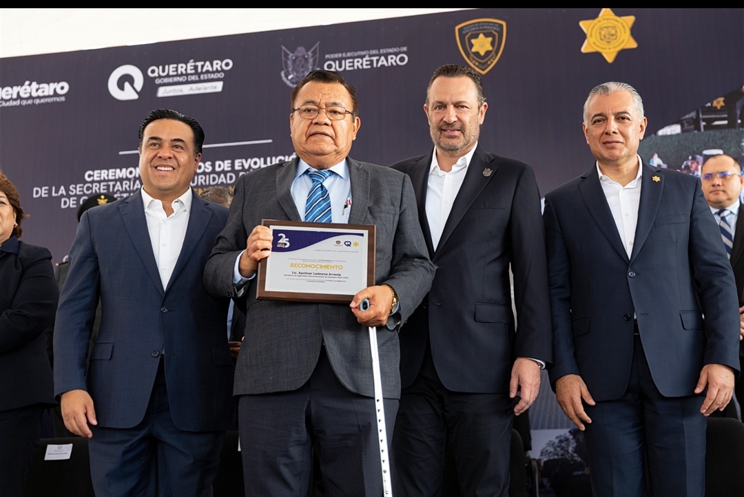 En el marco del evento se entregaron reconocimientos a personal administrativo y policial fundador de la Secretaría de Seguridad Pública Municipal de Querétaro, a los extitulares de la dependencia: Apolinar Ledesma Arreola, Amadeo Valladares Álvarez, Juan Marcos Granados Torres y José Héctor Benítez López; así como al actual presidente municipal por formar parte de la historia de la institución.
